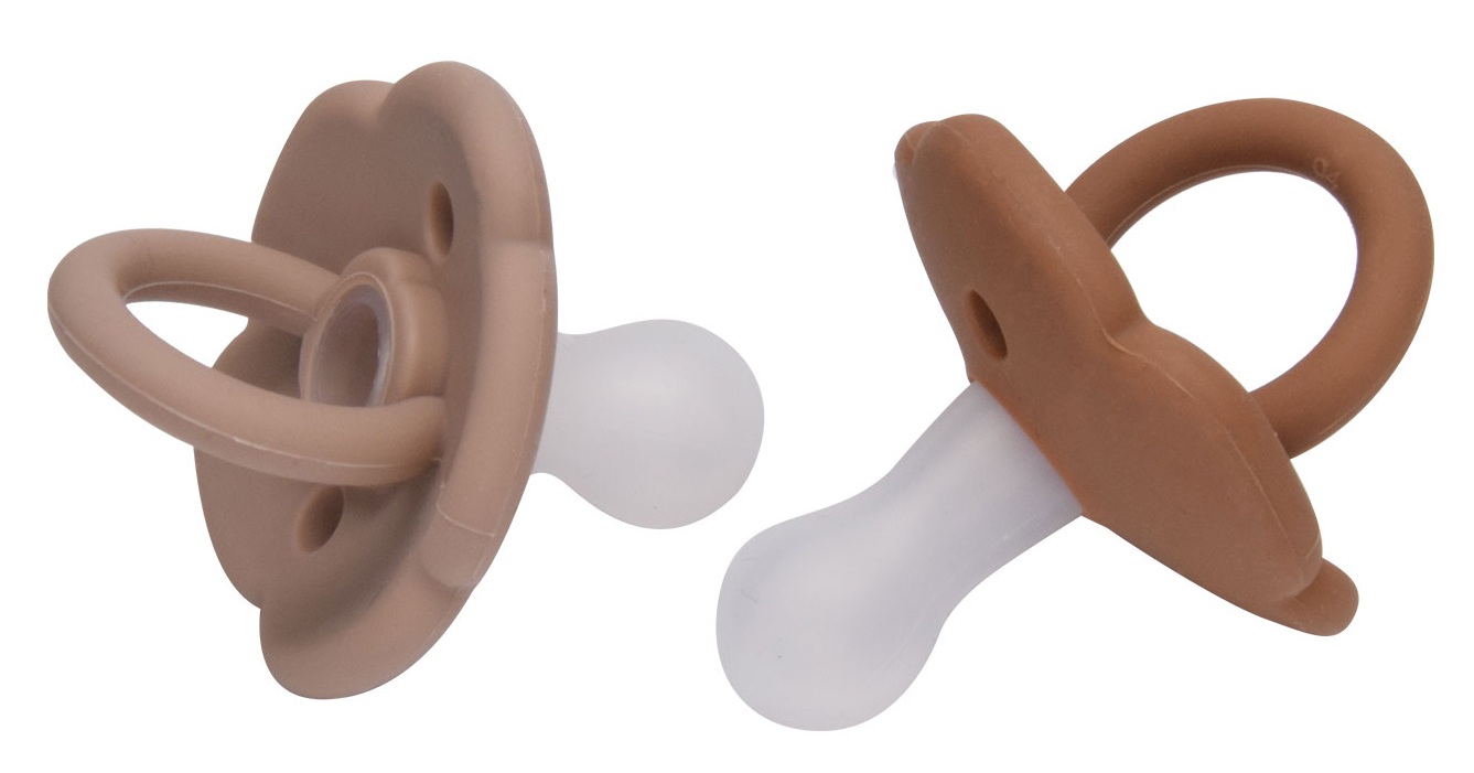 זוג מוצצים 100% סיליקון עם פתחי איוורור למניעת פריחת פה (0-6) - Stone/Caramel miya baby
