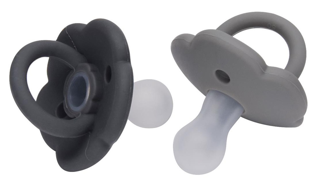 זוג מוצצים 100% סיליקון עם פתחי איוורור למניעת פריחת פה (0-6) - Grey/Light grey miya baby