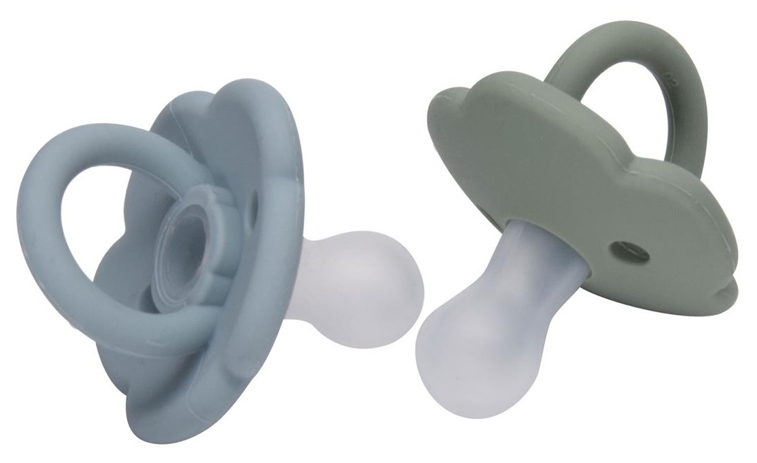 זוג מוצצים 100% סיליקון עם פתחי איוורור למניעת פריחת פה (0-6) - Sky Blue/Sage miya baby