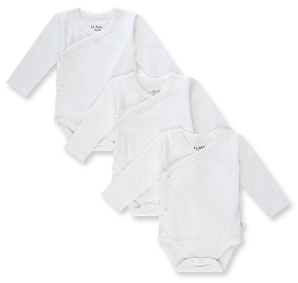 שלישיית בגד גוף מעטפת לתינוק עם שרוול ארוך 100% כותנה במידה NB - לבן LU&ME
