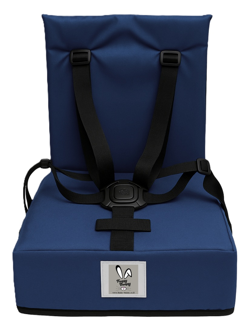 כיסא הגבהה Grow Up מתקפל ונח עם רצועות פנימיות וקשירה לכיסא מטבח/פינת אוכל - כחול נייבי Funny Bunny