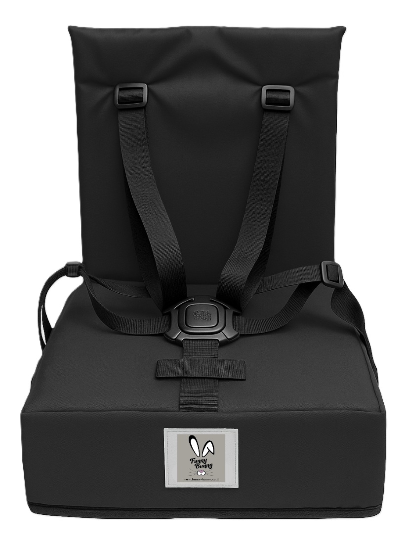 כיסא הגבהה Grow Up מתקפל ונח עם רצועות פנימיות וקשירה לכיסא מטבח/פינת אוכל - שחור גרפיט Funny Bunny