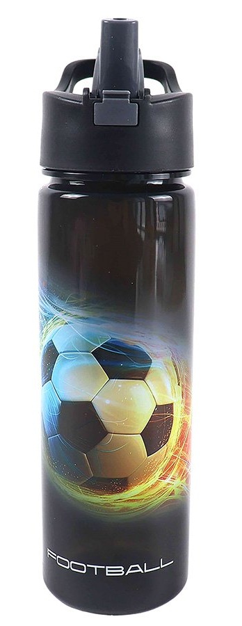 בקבוק שתייה שקוף מפלסטיק עמיד 600 מ"ל עם לחצן ופיה נשלפת - כדורגל צבעוני פלפוט