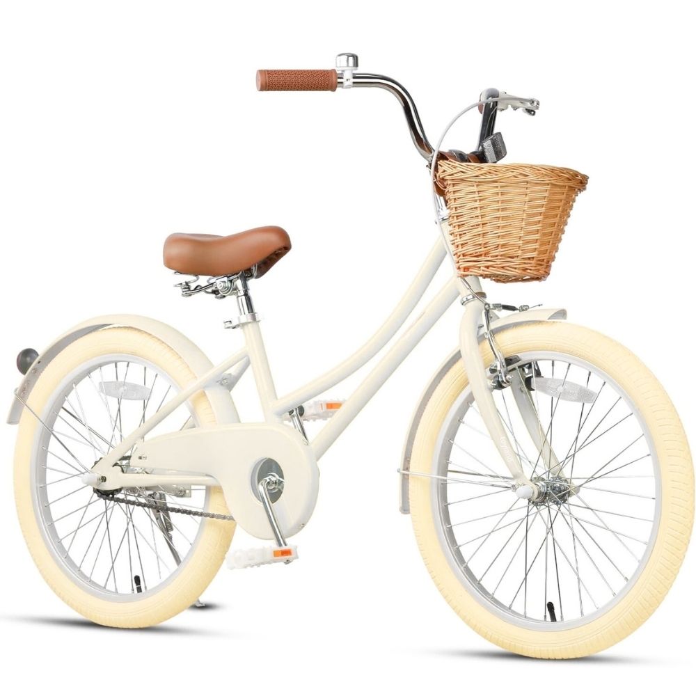 אופניים לילדים בעיצוב רטרו עם 7 הילוכים מושב מתכונן, פעמון וסלסילה במראה וינטג' - 26 אינץ לבן טוילנד