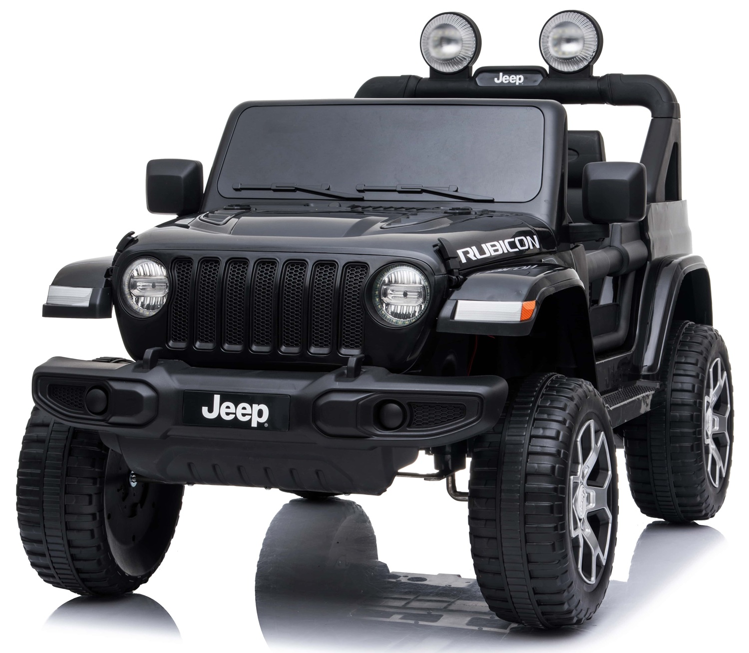 מכונית ממונעת 12V בדמות ג'יפ רוביקון Rubicon דו-מושבי עם דלתות נפתחות, גלגלי EVA, אורות ושלט עצירת חרום - שחור טוילנד