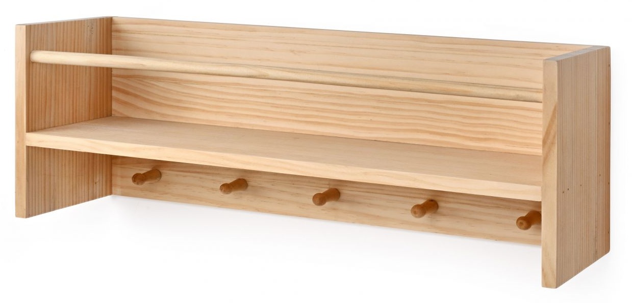מדף קיר רחב מעוצב מעץ עם 5 מתלים לורה סוויסרה