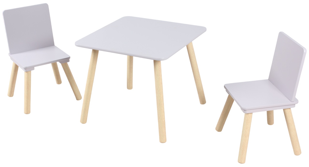 סט שולחן ושני כסאות עשויים מעץ מלא וישדרג כל חדר ילדים.