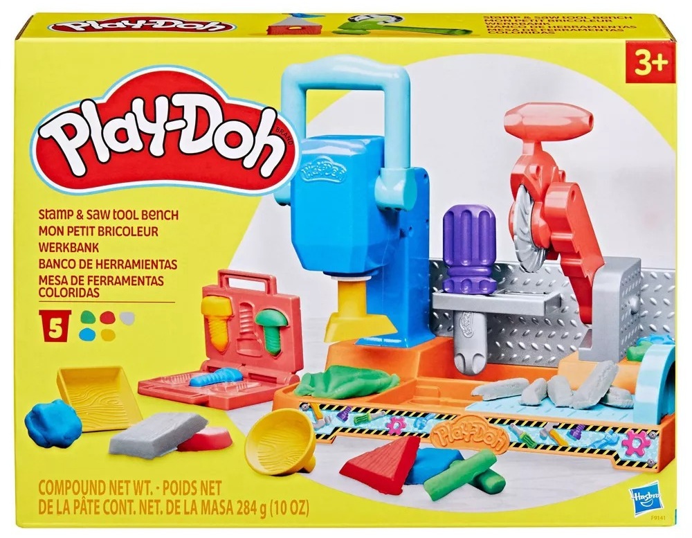 ערכה ליצירה בבצק עם שלל אביזרים ו 5 מיכלי בצק צבעוני - סדנת כלי עבודה פליידו