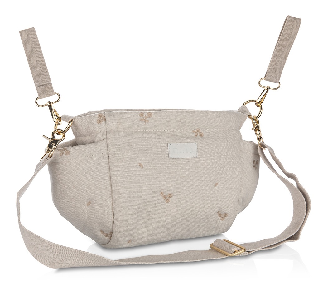 אירגונית מעוצבת לעגלות תינוק וטיולינים עם מקום לבקבוקים, רצועות תליה וכתף - אפור אבן עם רקמה nino נינו