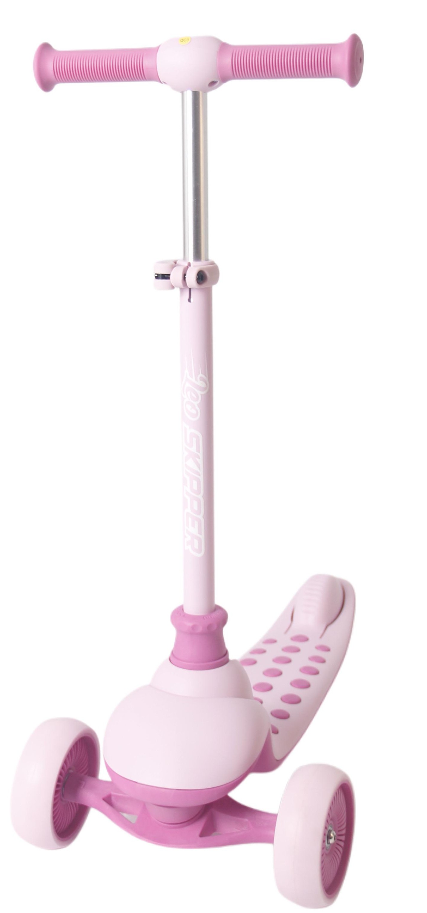 קורקינט ילדים סקיפר SKIPPER מתקפל 3 גלגלים מאירים וכידון מתכונן - ורוד LEO PRO