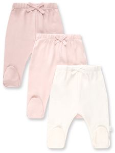 שלישיית בגד גוף מעטפת לתינוק עם שרוול ארוך 100% כותנה פלנל במידה NB - לבן + שלישיית מכנסיים ארוכים עם רגליות לתינוק 100% כותנה מידה NB - ורוד בהיר =
