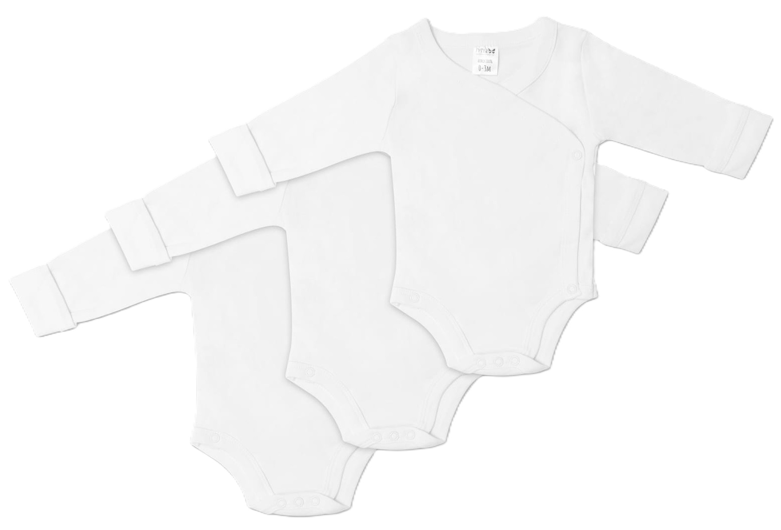 שלישיית בגד גוף מעטפת לתינוק עם שרוול ארוך 100% כותנה פלנל במידה NB - לבן צחית