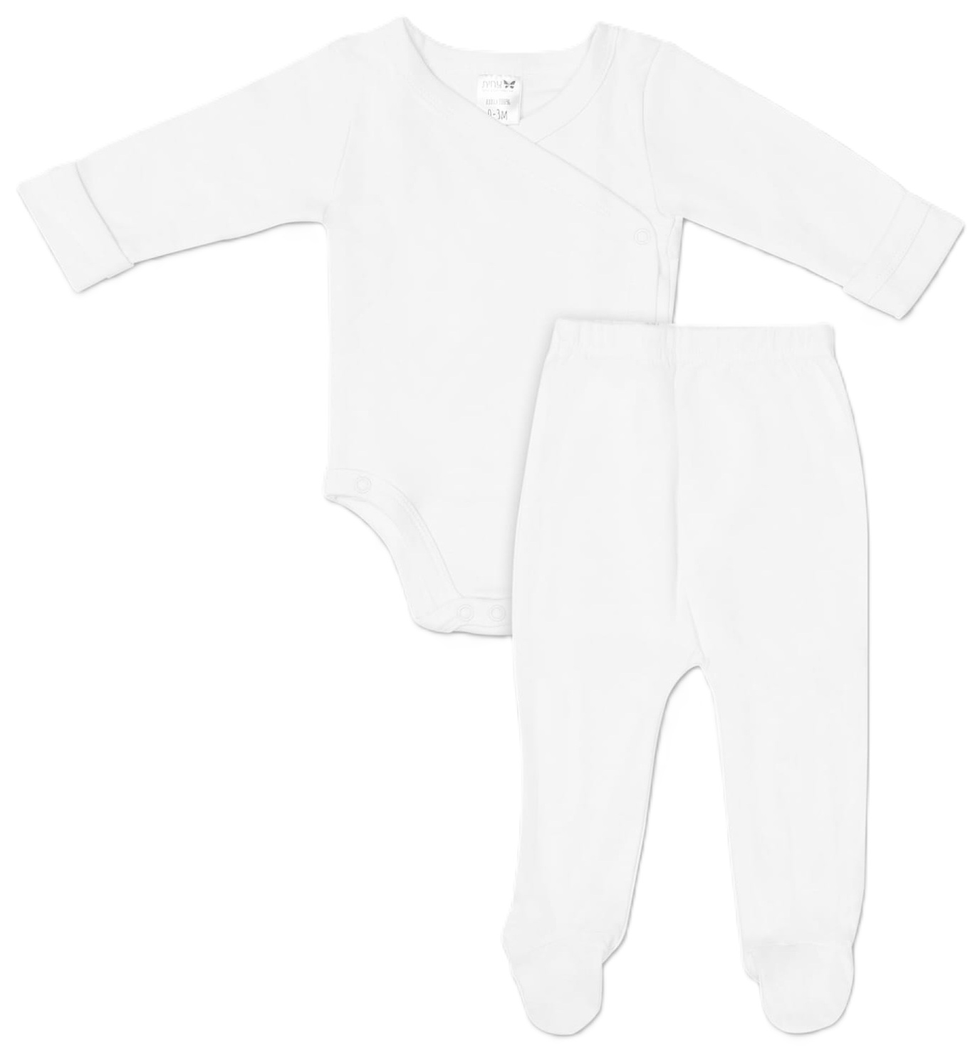 סט בגד גוף מעטפת לתינוק עם שרוול ארוך ומכנס רגלית 100% כותנה פלנל במידה NB - לבן צחית