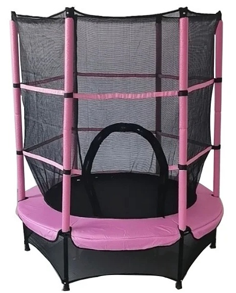 טרמפולינה לחצר בקוטר 140 ס"מ עם רשת בטחון וריפוד מגן - ורוד קפיץ קפוץ