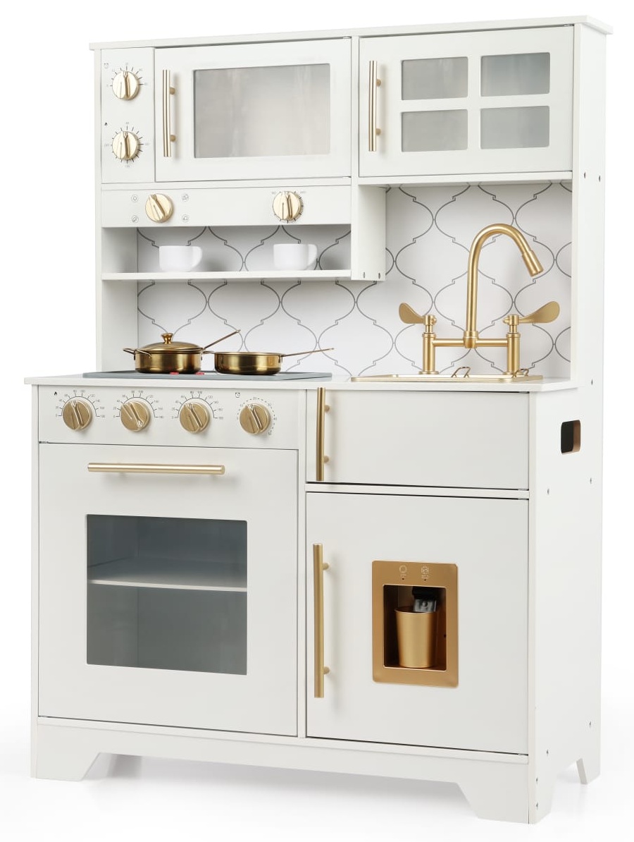מטבח משחק יוקרתי לילדים עם כיריים אורות וצלילים - ירושלים לבן וזהב שירת הגן