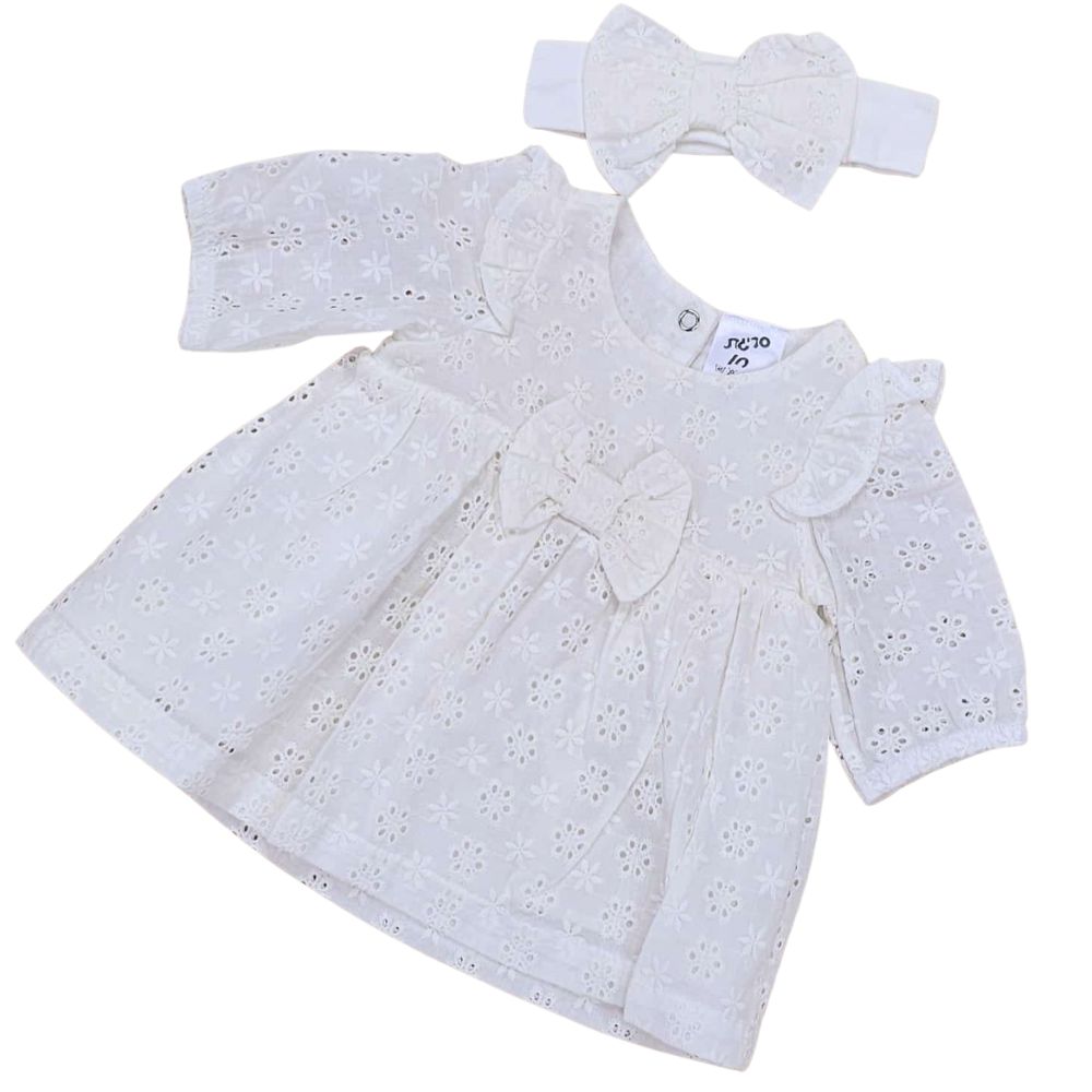 סט לבריתה: שמלת תחרה וסרט ראש תואם - מראה ניו בורן אלגנטי לצילומים סריגת חן