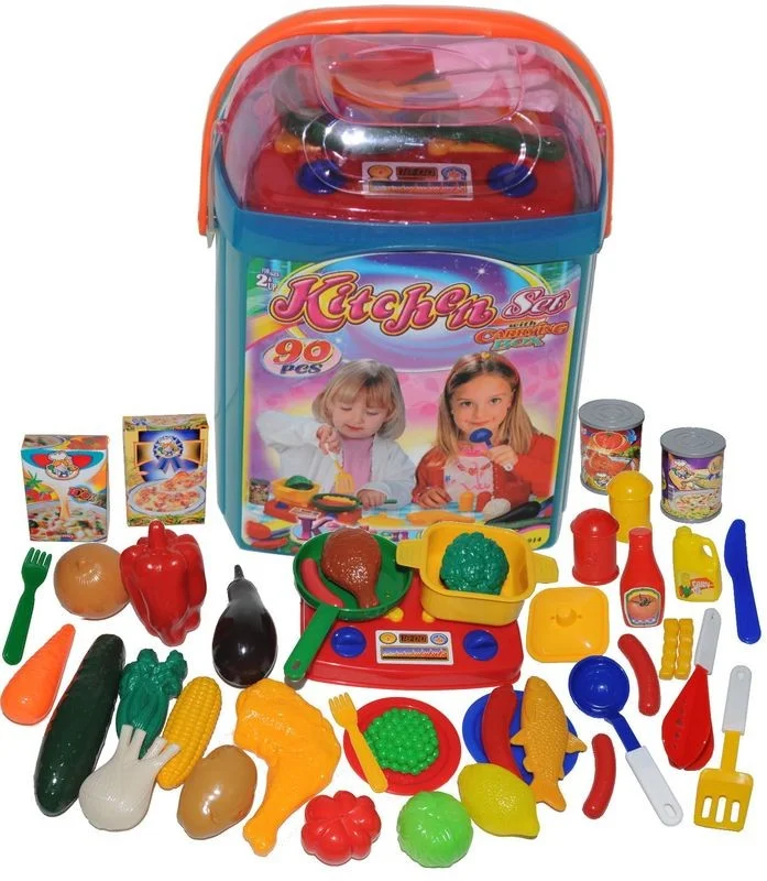 דלי פלסטיק גדול עם 90 אביזרי מטבח לילדים צעצועי אליקה