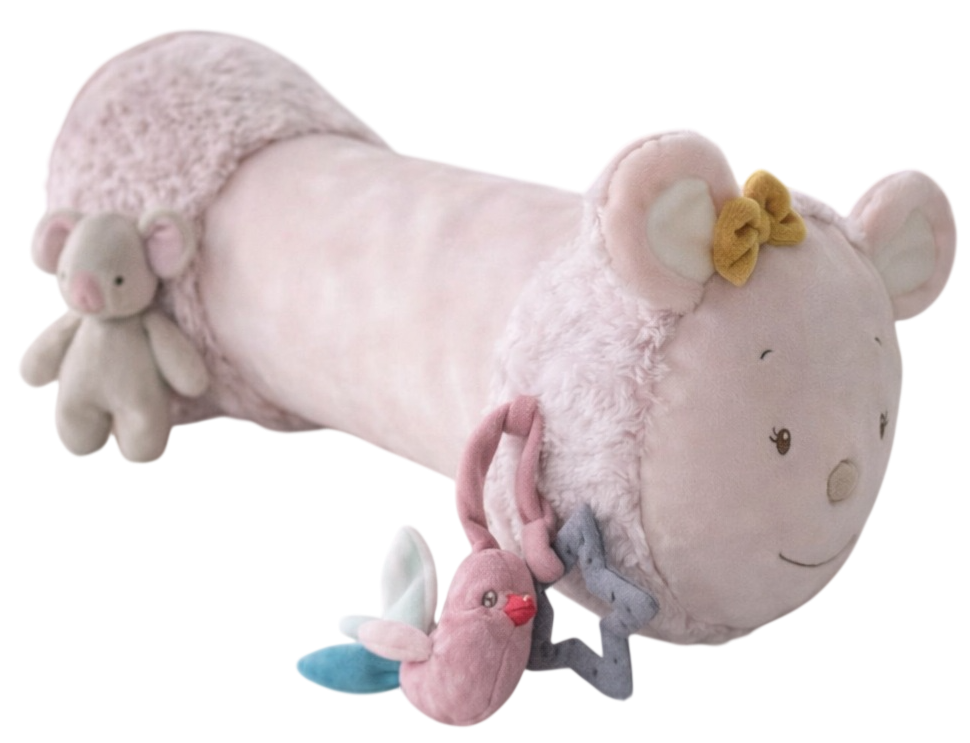 כרית בטן עם 3 צעצועי בד מחוברים - ארנב ורוד Nuni