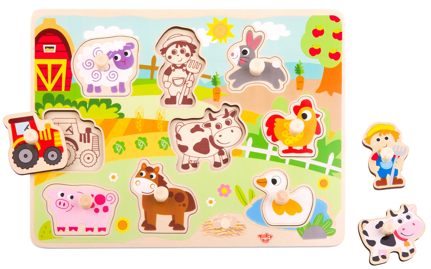 פאזל כפתורים מעץ 9 חלקים - חיות חווה Tooky Toy