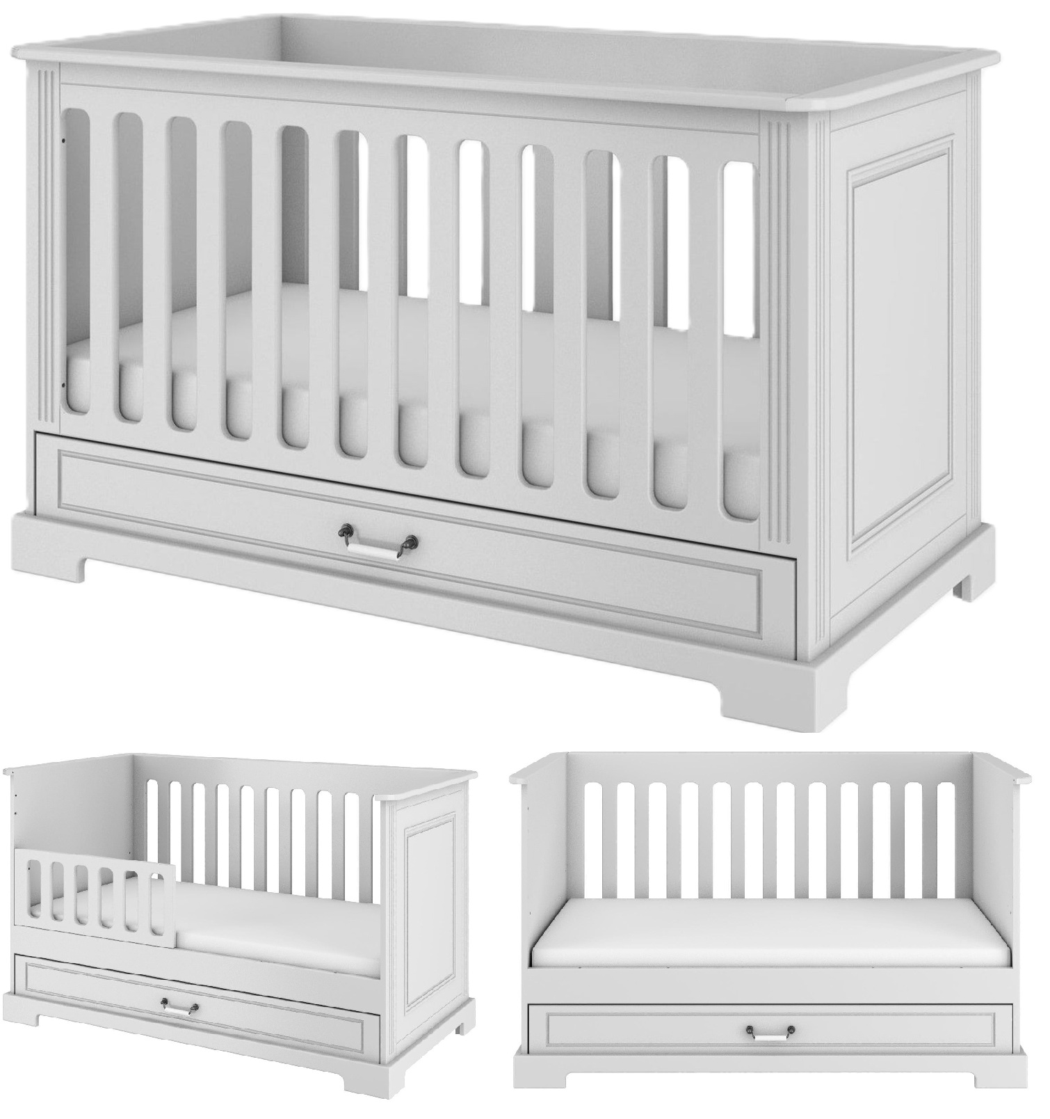 מיטת התינוק מדגם אינס היא רהיט רב-תכליתי המעוצב בקו אירופאי קלאסי ויוקרתי.
